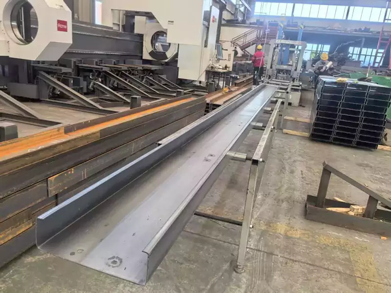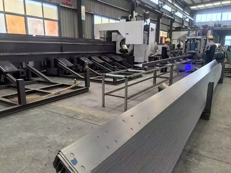 2. Wykrawanie: Wyposażony w wykrawarkę CNC, umożliwia wielokątowe wykrawanie środników i kołnierzy, z tolerancją średnicy otworu ± 0,2 mm i dokładnością rozstawu otworów ± 0,3 mm. Może także jednocześnie wytwarzać otwory zgodne ze standardowymi amerykańskimi wzorami połączeń stalowych o przekroju C (takich jak otwory adaptera Simpson Strong-Tie).
